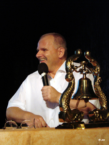 Friedrich (Kieteubl) In seinen Sonetten reflektiert er über eine erfahrbare Außenwelt als Widerspiegelung einer sich dialektisch entfaltenden, inneren Seelennatur. Die für dieses Programm mit Bedacht ausgewählten Sonette zeichnen in subtilen, farbigen Bildern dieses oszillierende Spannungsfeld nach. Das Bild rechts zeigt ihn in der Generalprobe beim Einsprechen ... |